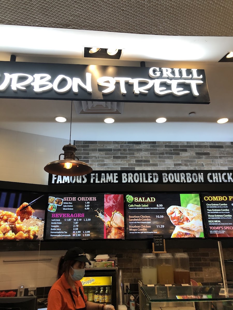 The menu at Bourbon Street Grill in Paramus, NJ offers a delightful mix of dishes to satisfy various tastes. For those seeking variety, the 3 Entrees Combo Plate is a standout, allowing guests to choose a combination of meats and sides, perfect for those who enjoy a little bit of everything. The Any 2 Meats & 2 Sides plate is another great option for a filling meal, while the Kids Meal offers smaller portions for younger diners. Sandwich lovers will appreciate the Bourbon Chicken Sandwich Combo, a flavorful and satisfying choice. For a lighter option, the Bourbon Chicken Wrap Combo delivers the same delicious flavors wrapped in a convenient form. If you're in the mood for refreshing beverages, the restaurant offers Homemade Lemonade, soda, Snapple, Homemade Ice Green Tea, and Bottle Water to quench your thirst. To complement your meal, there are various side orders, including Side Dishes and Appetizers, which provide extra flavor and texture to your plate. For those who prefer a fresh start to their meal, the Cafe Fresh Salad offers a crisp, vibrant option. With a diverse range of menu items, Bourbon Street Grill ensures there's something for everyone, whether you're grabbing a quick bite or enjoying a relaxed meal.